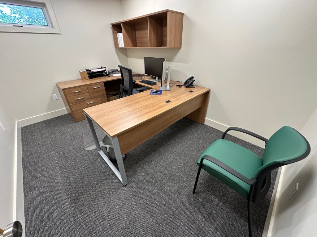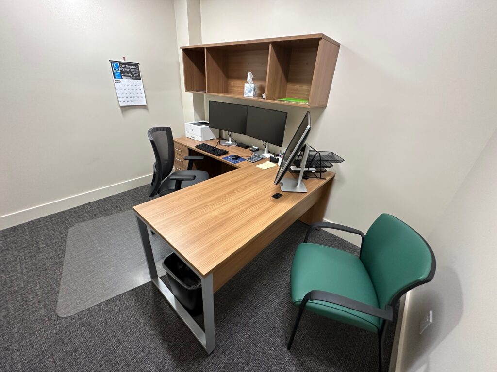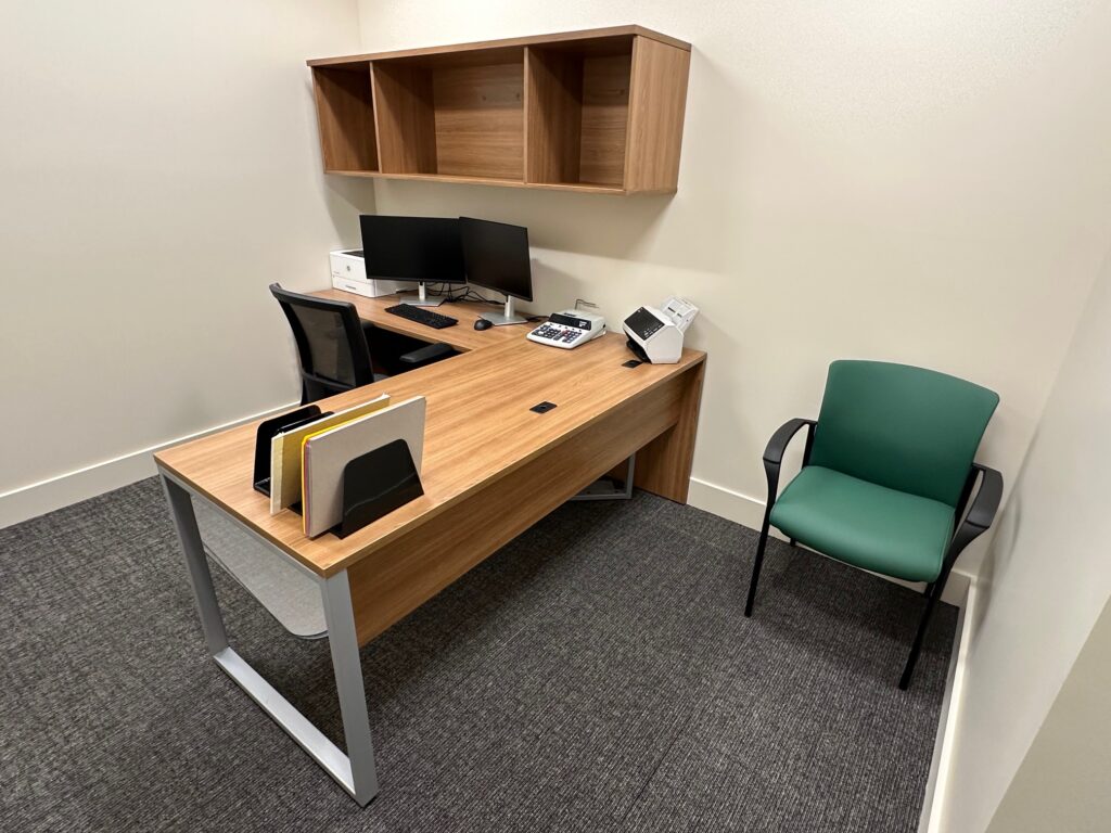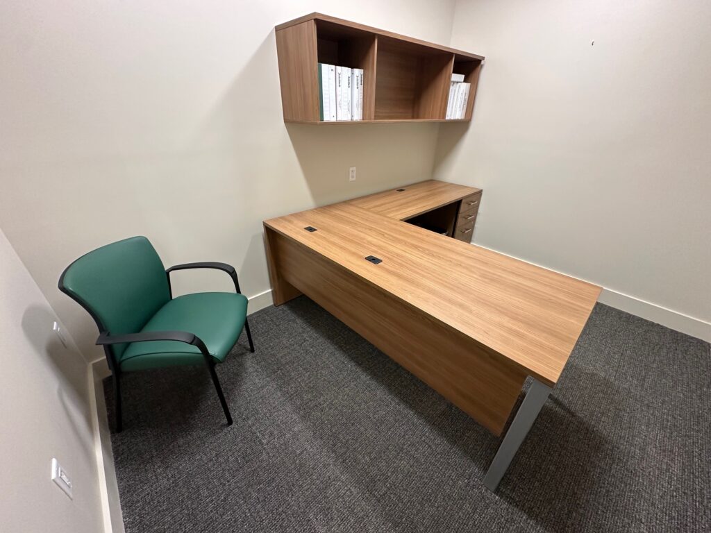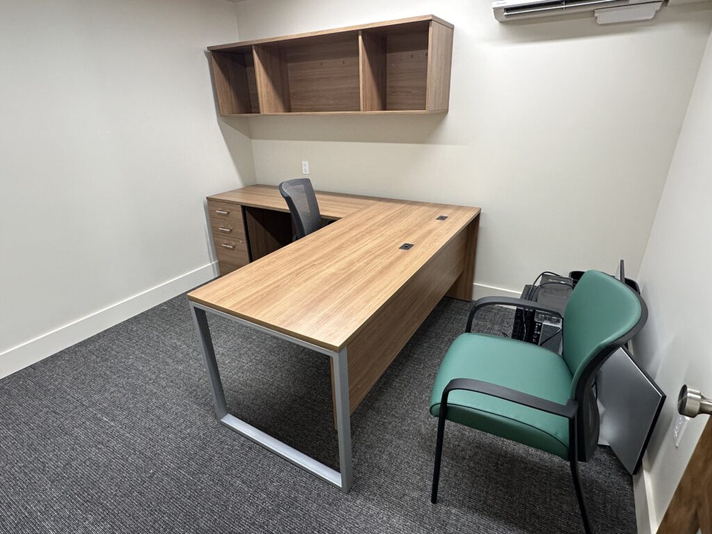 • Private offices furnished with durable desks, integrated storage, and comfortable executive seating