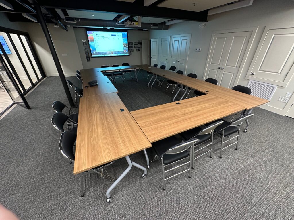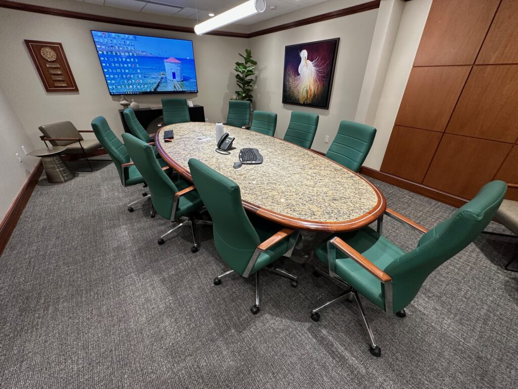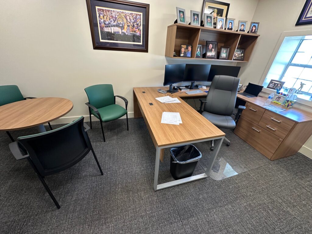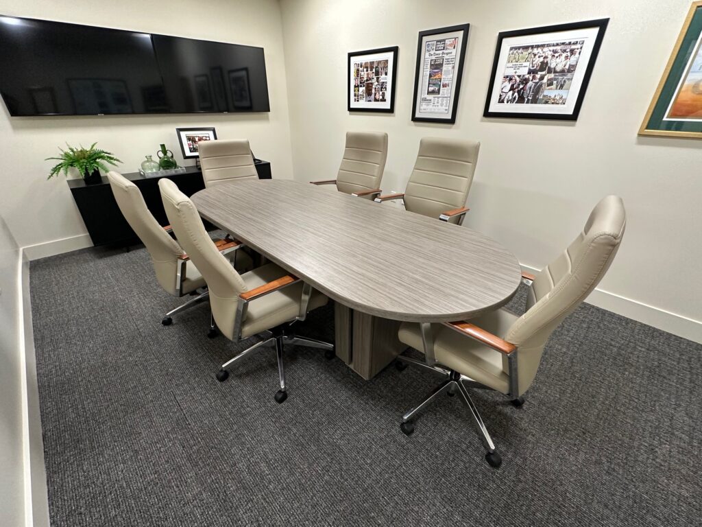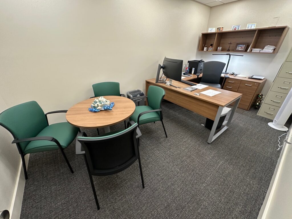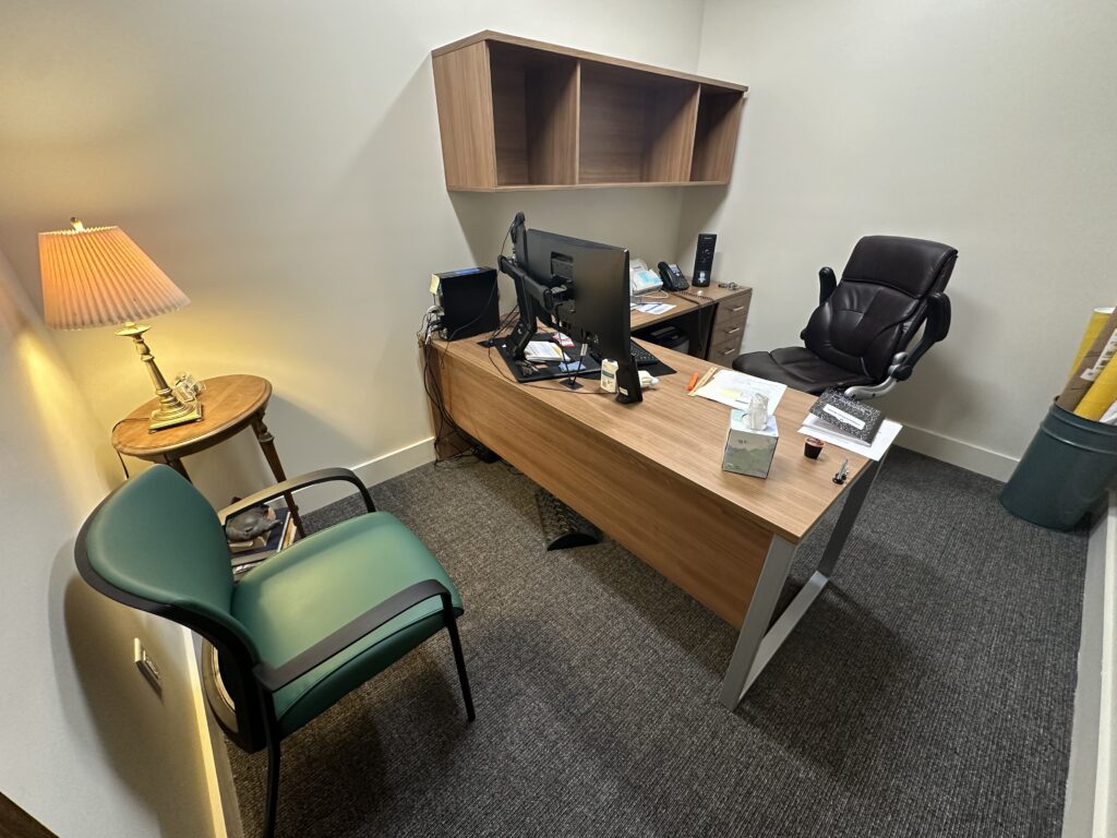 • Private offices furnished with durable desks, integrated storage, and comfortable executive seating
