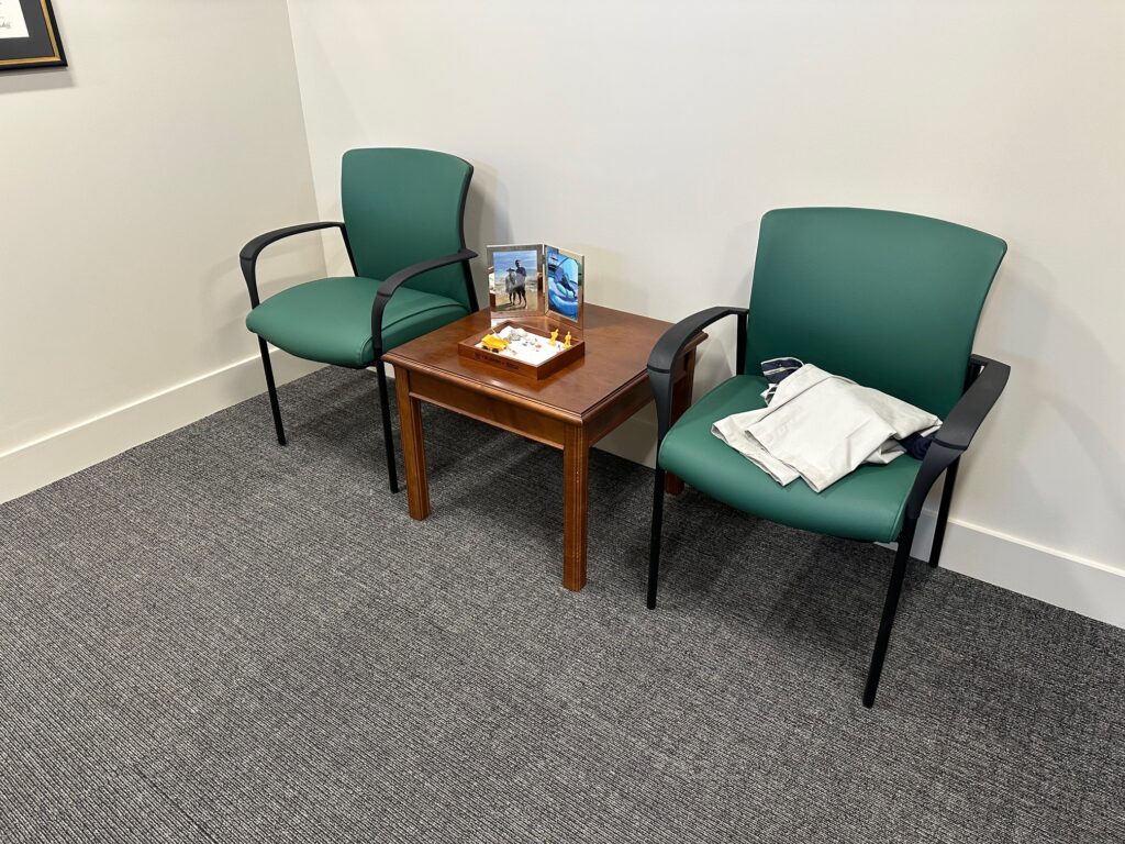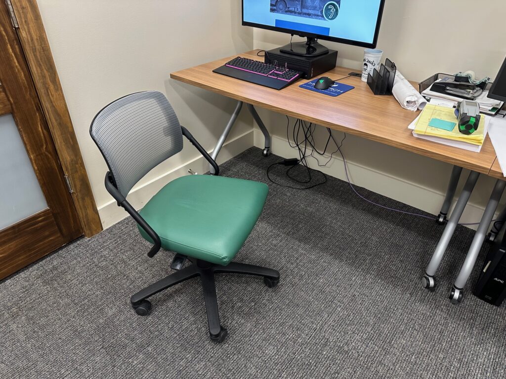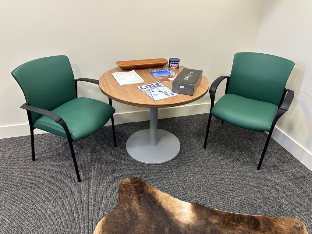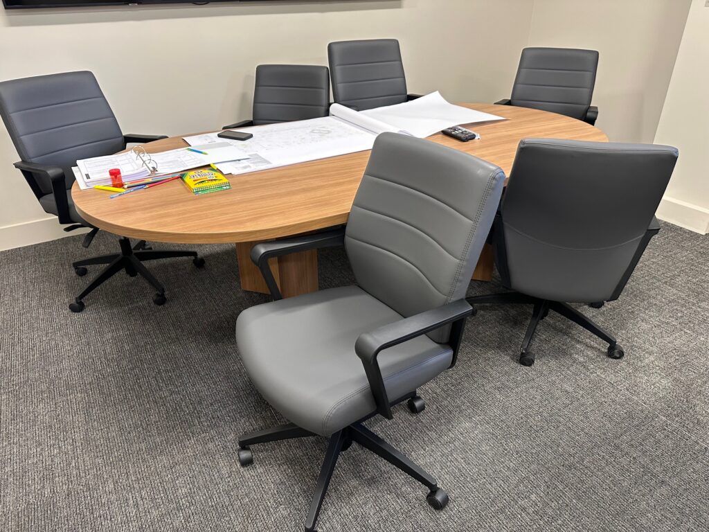 • Seating solutions throughout the office, including ergonomic chairs and guest seating in matching company colors
